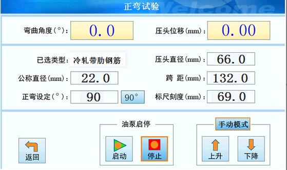 觸摸式彎曲試驗(yàn)控制系統(tǒng),操作簡(jiǎn)單、占用面積小、可根據(jù)試驗(yàn)要求設(shè)定彎曲角度并自動(dòng)計(jì)算所需彎曲壓頭直徑與支輥間距、有手動(dòng)與自動(dòng)雙模式選擇、自動(dòng)模式下可實(shí)現(xiàn)試驗(yàn)過(guò)程一鍵操作(下圖為控制系統(tǒng)圖例)